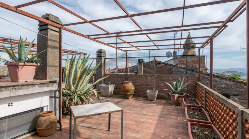 Il quarto piano è davvero il “pezzo forte”. Oltre a due locali ad uso ripostiglio e alla lavanderia, troviamo un grande vano, ideale per creare uno studio, una camera o un’ulteriore cucina, perfetta per preparare cene estive da gustare sulle terrazze. Con oltre 100 mq di terrazze su vari livelli, potrai dominare Peccioli e ammirare pittoreschi scorci che solo dall’alto si possono apprezzare.